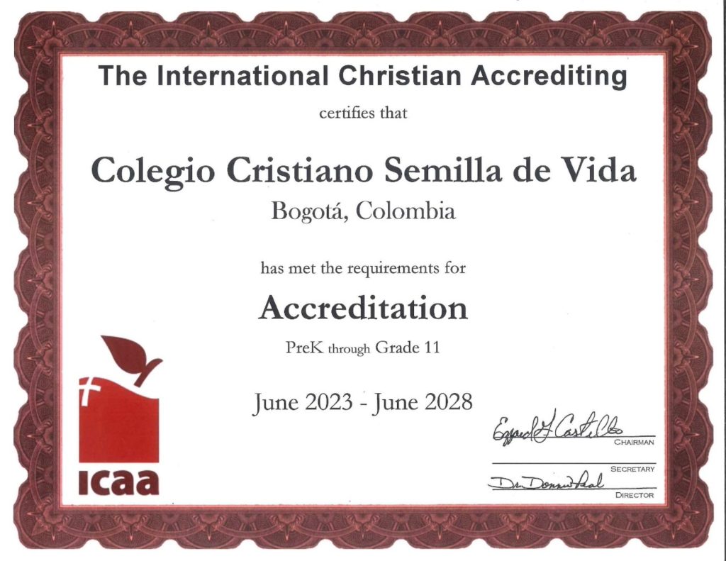 En el año 2003, el Colegio Cristiano Semilla de Vida dio un paso trascendental al iniciar el proceso de acreditación internacional con la International Christian Accrediting Association (ICAA). Este proceso implicó una evaluación rigurosa basada en estándares internacionales de calidad educativa.